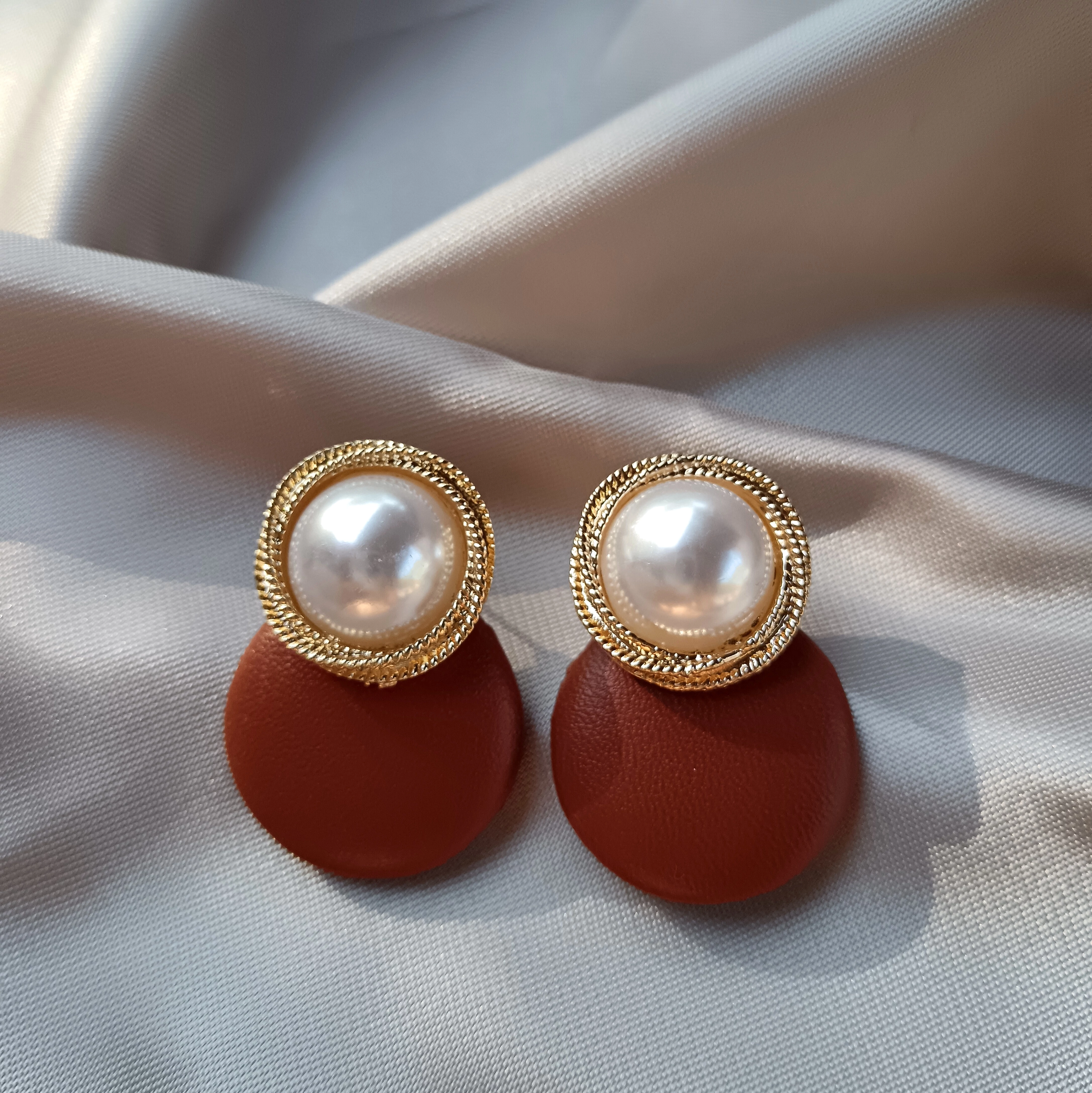 Barna bőr fülbevaló teklával