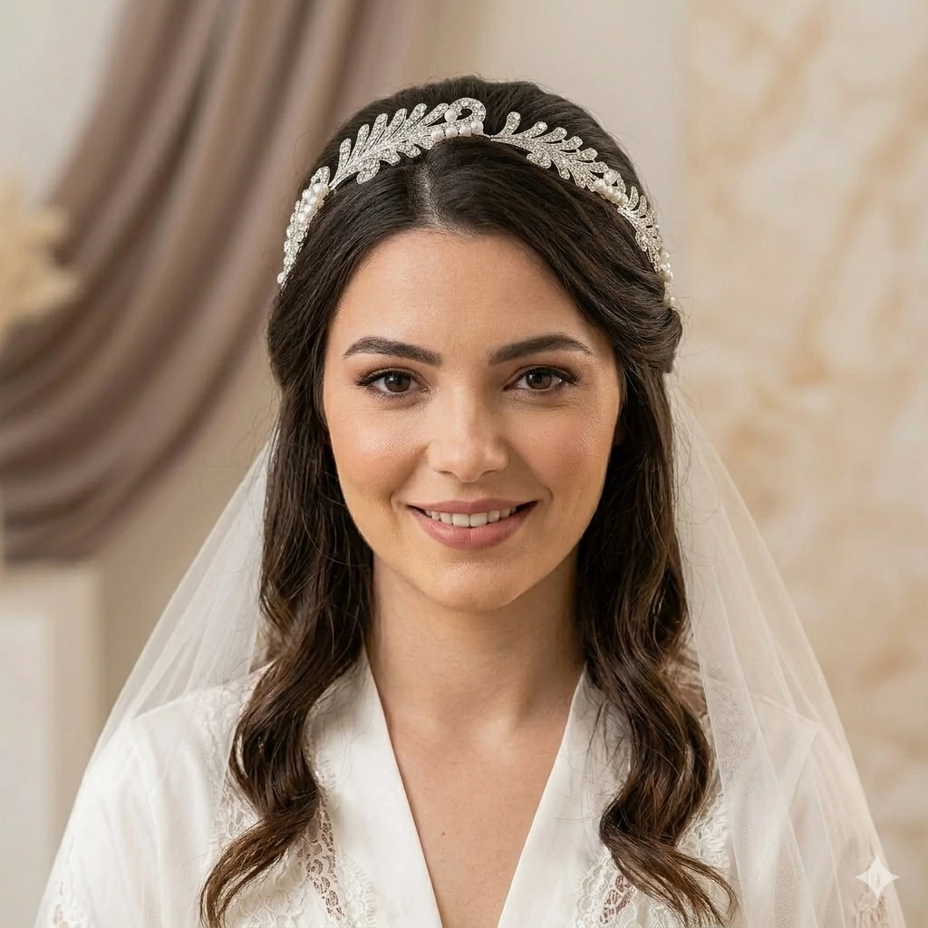 Csodaszép fejdísz a nagy napra, a két végén erős hullámcsat van rögzítve. A fejdísz tekla és cirkónia kövekkel van díszítve.