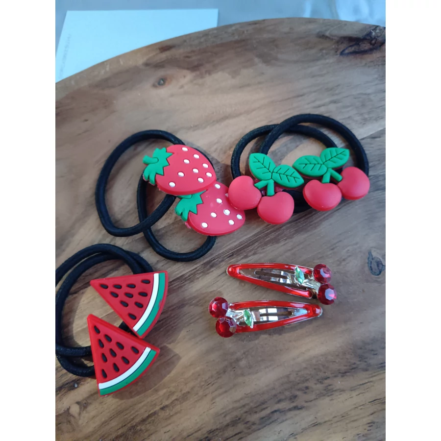 Dinnyés, Cseresznyés, epres hajgumi, párosával rendelhetőek, puha- szilikon anyagú figurákkal