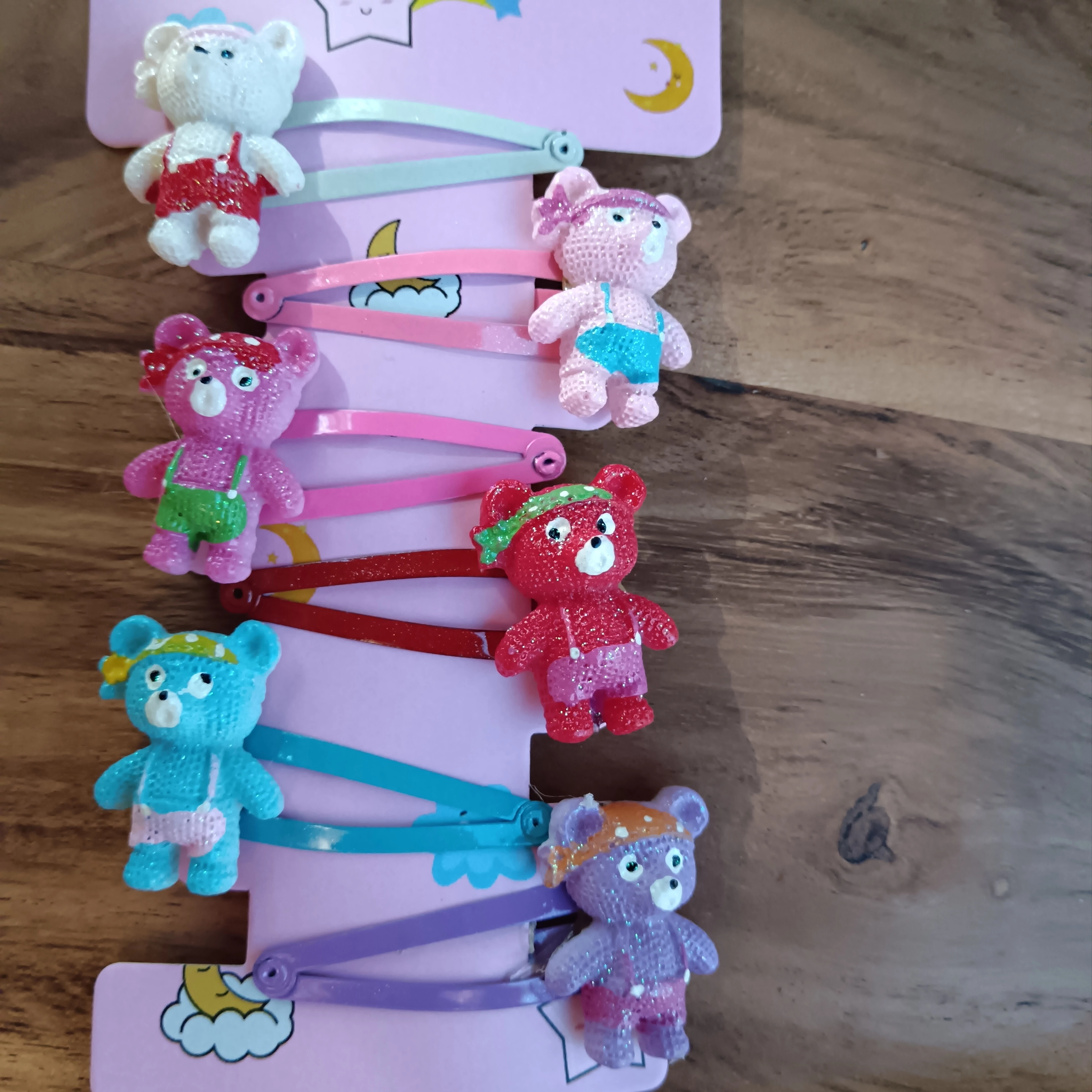 4cm hossz csitcsatok, Csillogó macis figurákkal. Szett tartalma: 6 db macis csatot küldünk egy termék vásárlása esetén