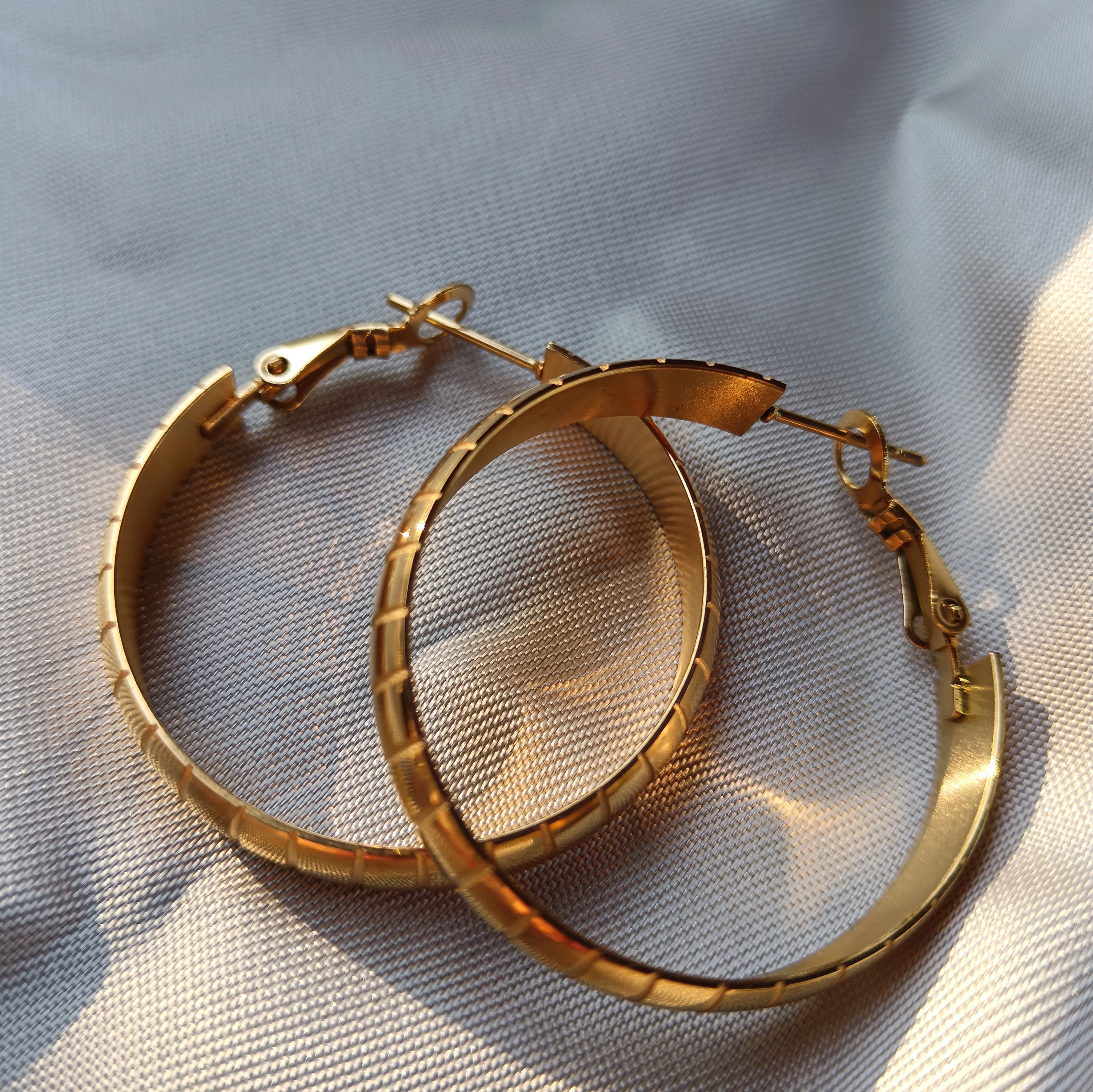 Nemesacél vastag csíkos arany karika fülbevaló